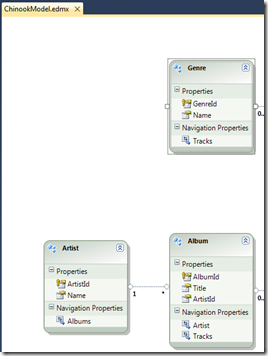 Notice the following change,that was made to ChinookModel.tt in order to have the entities in a separate project: